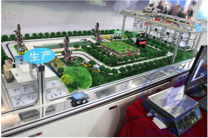 倉儲環(huán)節(jié)主要模擬產品出入倉庫、物品貨架庫位的自動識別、物品信息自動盤點等功能。該環(huán)節(jié)有兩種展示形式,一種是實際倉儲方式,一種在沙盤上模擬。
