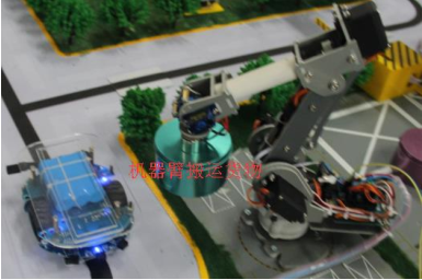 對于不規(guī)則貨物,可采用機器臂控制系統(tǒng)裝卸貨。六自由度機械臂的臂部由大臂、小臂組成,一般具有兩個自由度,即伸縮、回轉、俯仰或升降,采用單片機控制運動軌跡。當小車到達裝卸貨指定地點時,通過無線向管理平臺發(fā)出命令,管理平臺接收到后,通過無線通信向機器臂控制器發(fā)送裝卸貨指令,控制器接收到命令后,就按照指定的取貨位置,操作機器臂經過回轉、伸縮、升降、俯仰等幾組動作組合,實現貨物的自動裝卸。貨物裝卸完成后,運輸車自動離開。