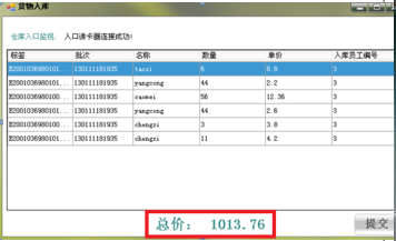 實際倉儲管理系統(tǒng)將物品信息綁定到超高頻電子標簽中,通過倉庫出入口處安裝的超高頻讀寫器對電子標簽進行識別,實現遠距離、準確地采集物品出入庫信息;同時采用鋁制貨架,貨架每一層的每一個庫位都安裝有高頻天線,通過多路選擇器連接到高頻讀卡器上,用于識別庫位上放置的物品,實現對庫位現有貨物的盤點以及貨物的定位功能。出入庫超高頻讀寫器以及盤點高頻讀寫器分別通過以太網和無線傳感器網絡接入中央控制系統(tǒng),由中央控制系統(tǒng)統(tǒng)一管理。