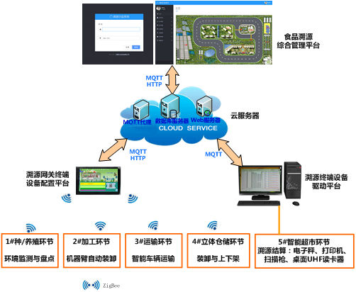 LGWL-SP01型 食品溯源物聯網實訓系統(tǒng)是針對近年來頻發(fā)的食品安全危機設計的覆蓋食品“產、加、運、儲、銷”各個環(huán)節(jié)的追溯系統(tǒng)。它綜合運用傳感器采集、RFID射頻識別、設備控制、無線傳感器網絡、嵌入式系統(tǒng)、網絡通信等物聯網技術以及多學科技術的交叉融合,依托部署在溯源沙盤中的各種傳感器節(jié)點、射頻識別裝置、控制節(jié)點、智能網關、服務器以及客戶端等,實現食品生產環(huán)節(jié)的智能感知與控制,加工環(huán)節(jié)的標簽自動識別讀寫,運輸環(huán)節(jié)的車輛智能定位與智能冷鏈感知,倉儲環(huán)節(jié)的貨架信息的智能感知,超市銷售環(huán)節(jié)的自助結算和食品溯源查詢等功能,為提供安全可靠的食品保駕護航。