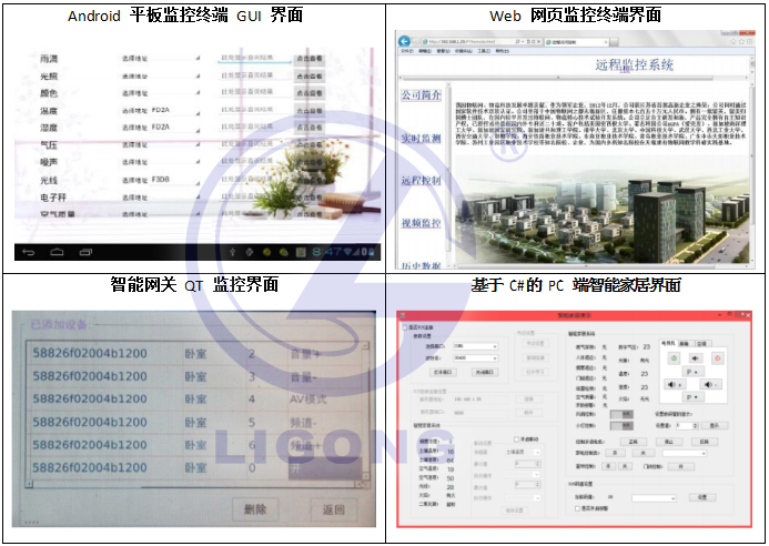 系統(tǒng)軟件默認采用 C/S 結(jié)構(gòu),主要包括無線網(wǎng)絡傳感器數(shù)據(jù)透明傳輸軟件、智能網(wǎng)關(guān)基于 Qt 的智能家居系統(tǒng)軟件、基于 Android 的智能家居系統(tǒng)軟件、基于 C#的智能家居系統(tǒng)軟件。同時系統(tǒng)提供基于 B/S 體系結(jié)構(gòu)的智能家居網(wǎng)絡化遠程監(jiān)控軟件。