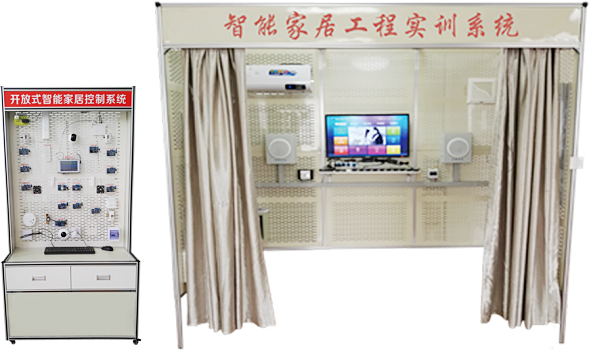 智能家居網(wǎng)板實訓系統(tǒng)主要由環(huán)境感知設備、安防門禁設備、控制設備、視頻監(jiān)控設備、智能網(wǎng)關(guān)、智能終端、以及鋁合金鋼架結(jié)構(gòu)組成。