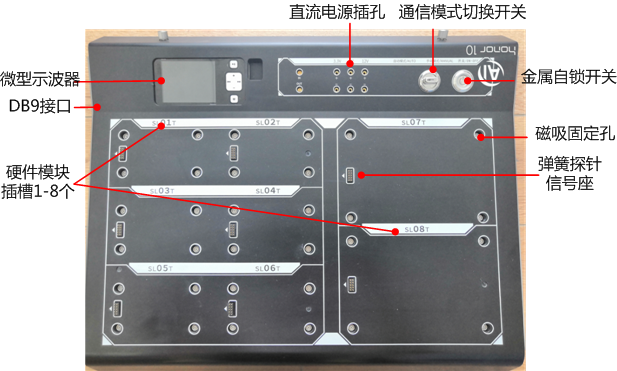 通用基礎(chǔ)平臺由平臺基座與垂直網(wǎng)板組成,符合人體工學(xué)設(shè)計?;_模設(shè)計,采用ABS材料,表面光滑,有質(zhì)感,有對應(yīng)絲印圖,美觀,大氣;基座具有DB9通信接口,3.3V/5V/12V電源插孔,通信選擇開關(guān)、總電源自鎖開關(guān);內(nèi)嵌微型示波器,可完成電路供電測試及工作過程關(guān)鍵點測試,能夠在電路原理學(xué)習(xí)基礎(chǔ)上完成實踐中的驗證測試,達到理實一體效果;具有8個SLOT插槽,磁吸固定孔,彈簧頂針管腳,可與硬件模塊磁性吸合,頂針連接,完成供電、RS485、RS232等標(biāo)準(zhǔn)總線通信。硬件模塊任意組合,支持各種場景應(yīng)用,每個模塊都有通信地址和硬件電路測試點,讓學(xué)生不僅懂得硬件電路原理,還可使用示波器測試硬件電路工作的瞬態(tài)過程。垂直網(wǎng)板是金屬網(wǎng)孔板,能磁吸或螺絲固定商用設(shè)備,用于用戶實驗拓展。