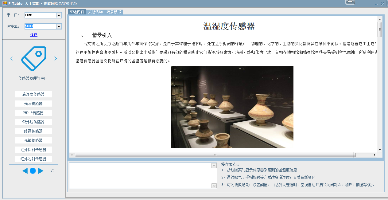 在C#軟件上有每一個教學(xué)實驗資源,包含實驗?zāi)康?,實驗原理,實驗?nèi)容,實驗步驟,實驗過程,實驗現(xiàn)象以及對應(yīng)場景應(yīng)用,能夠讓學(xué)生不僅學(xué)習(xí)傳感器概念,原理,開發(fā),還能學(xué)以致用。