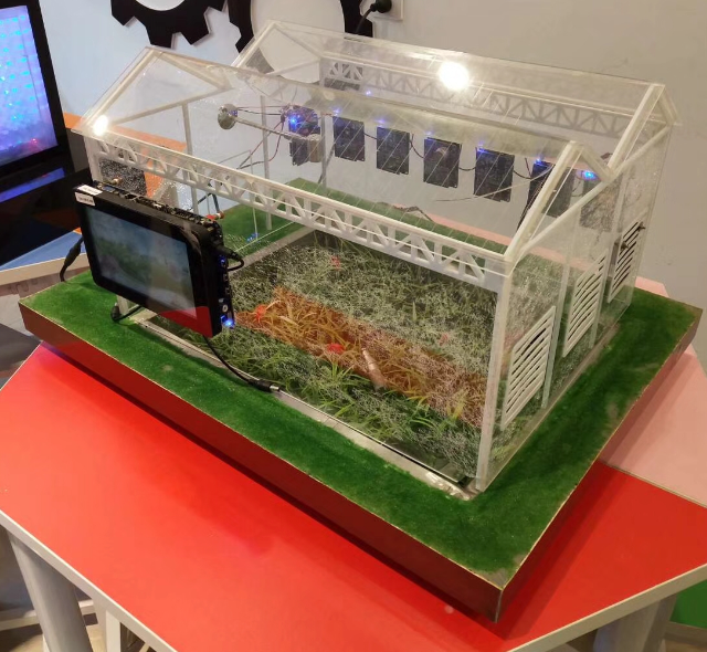 LGWL-NY05型 智慧農(nóng)業(yè)沙盤實(shí)訓(xùn)系統(tǒng)(參考尺寸(可定制):120cm×80cm×80cm),通過(guò)采集大棚內(nèi)空氣溫濕度、光照度、土壤濕度、二氧化碳濃度等數(shù)據(jù)信息,經(jīng)過(guò)WiFi組網(wǎng)到網(wǎng)關(guān)、網(wǎng)關(guān)通過(guò)以太網(wǎng)或4G網(wǎng)絡(luò)傳送給云服務(wù)平臺(tái),經(jīng)過(guò)分析處理,通過(guò)WEB頁(yè)面展示農(nóng)業(yè)生產(chǎn)環(huán)境的數(shù)據(jù)信息,控制加濕器、通風(fēng)扇、補(bǔ)光燈、遮陽(yáng)簾、點(diǎn)陣屏等執(zhí)行器的工作狀態(tài)。同時(shí),系統(tǒng)支持視頻采集,用戶可通過(guò)物聯(lián)網(wǎng)網(wǎng)關(guān)、WEB監(jiān)控平臺(tái)、移動(dòng)端近場(chǎng)或遠(yuǎn)程視頻瀏覽大棚的實(shí)時(shí)狀況。系統(tǒng)支持用戶自定義控制決策,實(shí)現(xiàn)農(nóng)業(yè)生產(chǎn)環(huán)境的自動(dòng)調(diào)節(jié),達(dá)到促進(jìn)作物生長(zhǎng)的目的。