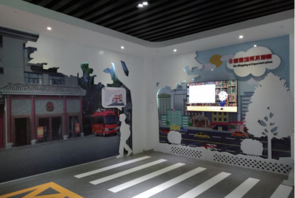翻越護欄釀慘?。耗M設置道路中間的隔離護欄情景,通過多媒體互動裝置讓參觀者體驗翻越道路護欄將會產生的危險。追車扒車不應該:模擬設置游追車、扒車情景,通過講解和多媒體視頻了解在道路上追車、扒車的危險。