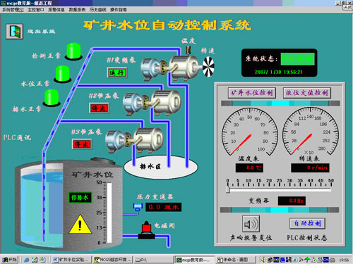 3. 具有完善的報警系統(tǒng),能逼真的模擬工業(yè)現(xiàn)場的各種情況,如礦井液位、泵轉(zhuǎn)速及電機溫度的檢測信號故障報警,低水位、高水位以及超高水位的聲光同步報警、優(yōu)先級報警,報警復(fù)位和報警禁止復(fù)位等功能