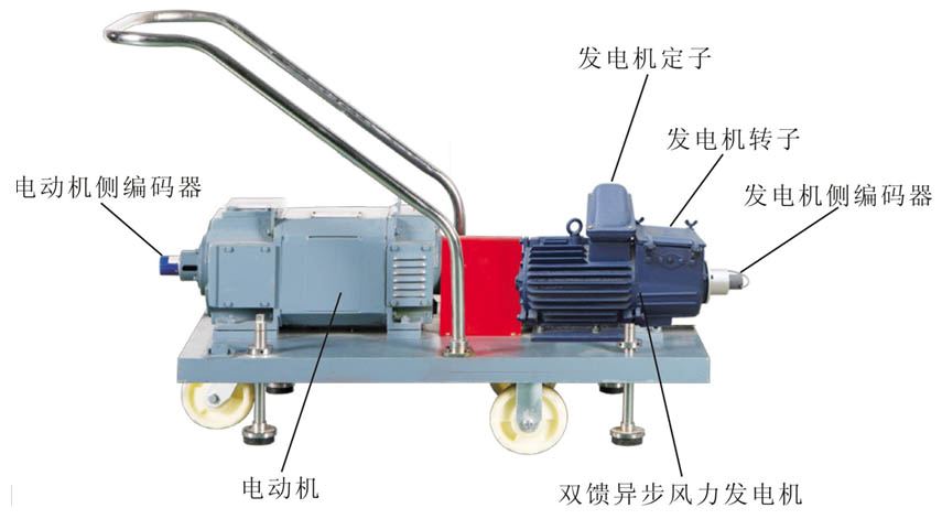 發(fā)電機(jī)組由直流電動(dòng)機(jī)、雙饋異步風(fēng)力發(fā)電機(jī)、轉(zhuǎn)速傳感器、機(jī)組固定底盤及配套件等構(gòu)成。