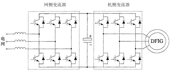 2.4雙饋?zhàn)兞髌鞴?br />        變流器柜含雙饋?zhàn)兞髌髦骰芈泛涂刂葡到y(tǒng)。變流器柜的主回路及控制回路構(gòu)成了雙饋?zhàn)兞髌?,雙饋?zhàn)兞髌髦饕蓹C(jī)側(cè)控制器及網(wǎng)側(cè)控制器兩部分組成。