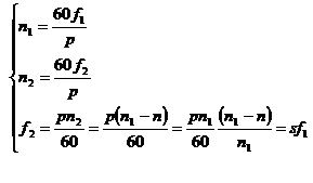 若將雙饋電機(jī)的定子接入電網(wǎng)上,則定子側(cè)的電流頻率可以認(rèn)為是不變的,由此可以通過(guò)檢測(cè)轉(zhuǎn)子的轉(zhuǎn)速來(lái)確定轉(zhuǎn)子繞組通過(guò)變頻器提供勵(lì)磁電流的頻率,由電機(jī)原理可以得出以下關(guān)系式: