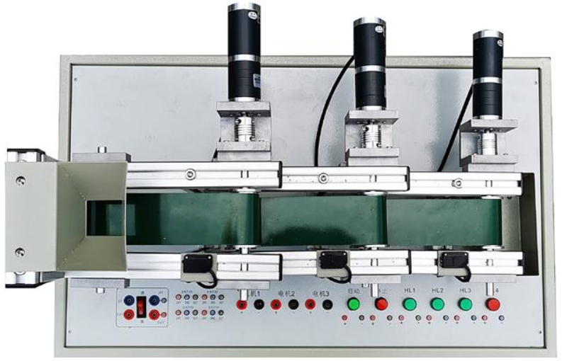 LGPFZC-1自動(dòng)送料裝車實(shí)訓(xùn)模型系統(tǒng)是用于物料輸送的流水線設(shè)備,主要是用于煤粉、細(xì)砂等材料的運(yùn)輸。本實(shí)訓(xùn)模型通過(guò)三臺(tái)電機(jī),三個(gè)傳送帶、料斗、小車模擬車斗)的配合,有效地完成物料的運(yùn)送、故障停止等功能。三臺(tái)電機(jī)控制三節(jié)傳送帶運(yùn)輸,電磁鐵YA控制料斗下料與否,傳感器ac檢2測(cè)運(yùn)料小車空滿;K1、K2、K3分別為電機(jī)M1,M2、M3故障設(shè)置開(kāi)關(guān)。