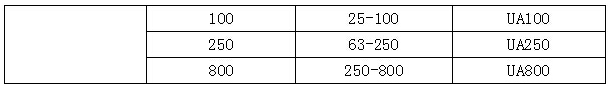 注:>250kW的低壓電動(dòng)機(jī),額定電流小于800A時(shí)均可選用800A等級的電動(dòng)機(jī)保護(hù)器。