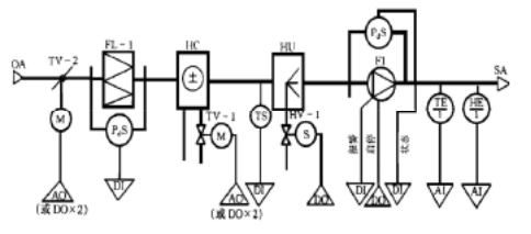 圖3新風(fēng)機(jī)組DDC控制系統(tǒng)原理圖
