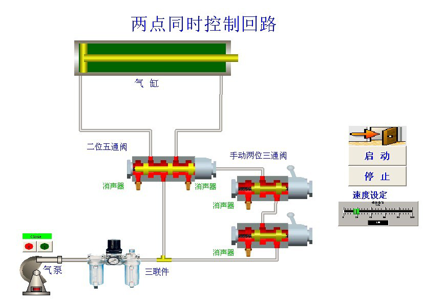 以天工氣動元件為主,配置詳見附件。氣動元件均配有過渡底板,可方便、隨意地將元件安放在實驗面板(面板帶“T”溝槽形式的鋁合金型材結(jié)構(gòu))上?;芈反罱硬捎每鞊Q接頭,拆接方便快捷。