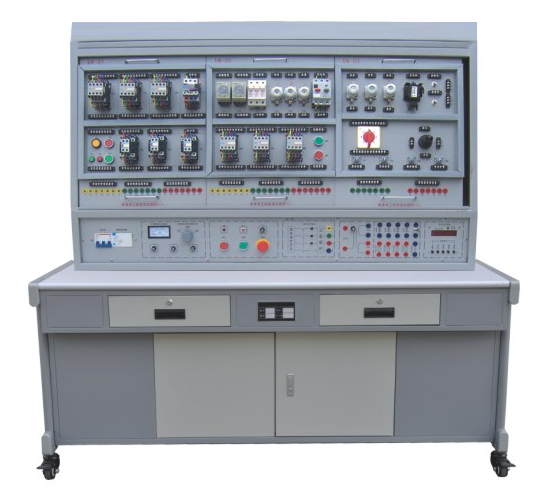 電機(jī)組試驗(yàn)臺(tái)實(shí)訓(xùn)桌為鐵質(zhì)雙層亞光密紋噴塑結(jié)構(gòu),桌面為防火、防水、耐磨高密度板、結(jié)構(gòu)堅(jiān)固,造型美觀大方。桌子左右各設(shè)有兩個(gè)抽屜(帶鎖),并帶有柜子,分別可用于放置掛件和實(shí)訓(xùn)用物品。