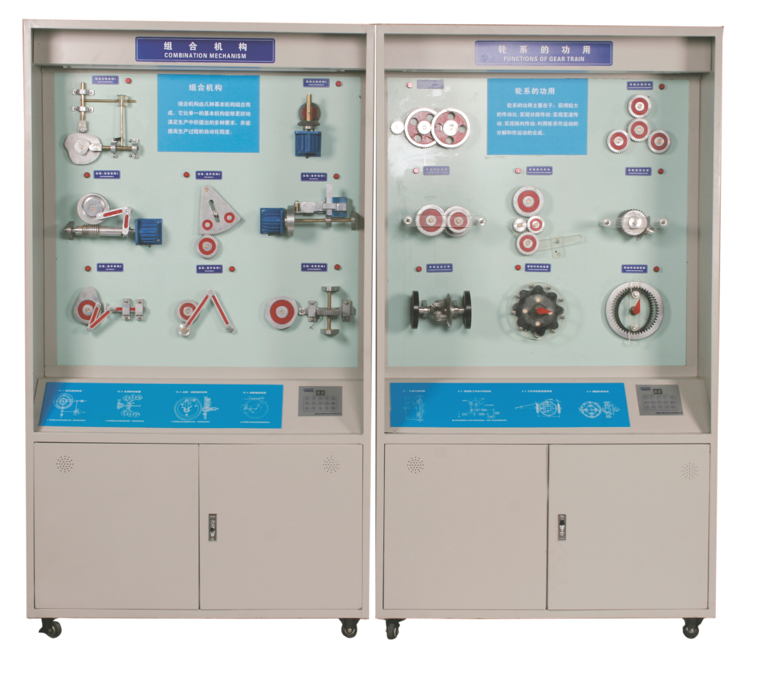 本陳列柜通過模型或?qū)嵨铮浜舷鄳?yīng)的圖文資料,借助電腦控制系統(tǒng)系統(tǒng)形象地演示和解說機(jī)器與機(jī)構(gòu)的組成、平面連桿機(jī)構(gòu)、空間連桿機(jī)構(gòu)、凸輪機(jī)構(gòu)、齒輪機(jī)構(gòu)、輪系、間歇運(yùn)動(dòng)機(jī)構(gòu)以及組合機(jī)構(gòu)等常見機(jī)構(gòu)的基本類型、結(jié)構(gòu)形態(tài)和實(shí)際應(yīng)用??梢约訌?qiáng)學(xué)生對(duì)常見機(jī)構(gòu)的感性認(rèn)識(shí),提高機(jī)構(gòu)設(shè)計(jì)與應(yīng)用能力。