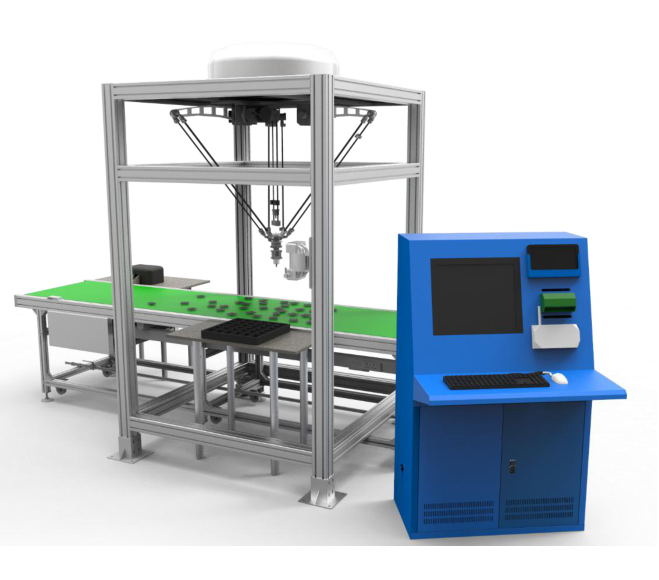 采用兩條輸送帶,主要完成物料輸送,配合機(jī)器人對(duì)物料進(jìn)行高速分揀。