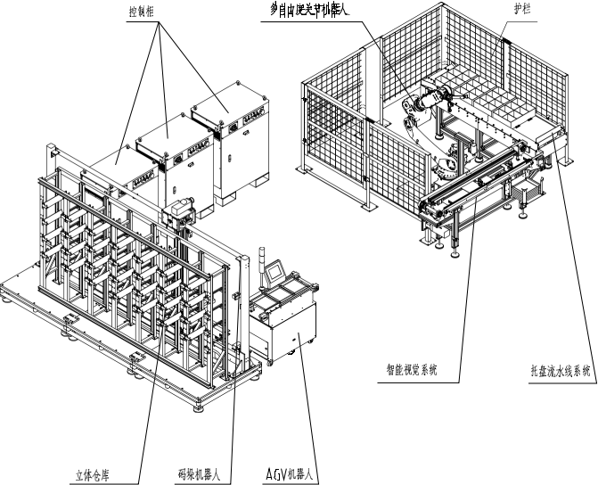 (1) 碼垛機(jī)立庫系統(tǒng),用于存儲(chǔ)物品托盤,并且按照要求碼垛機(jī)完成出庫和入庫;