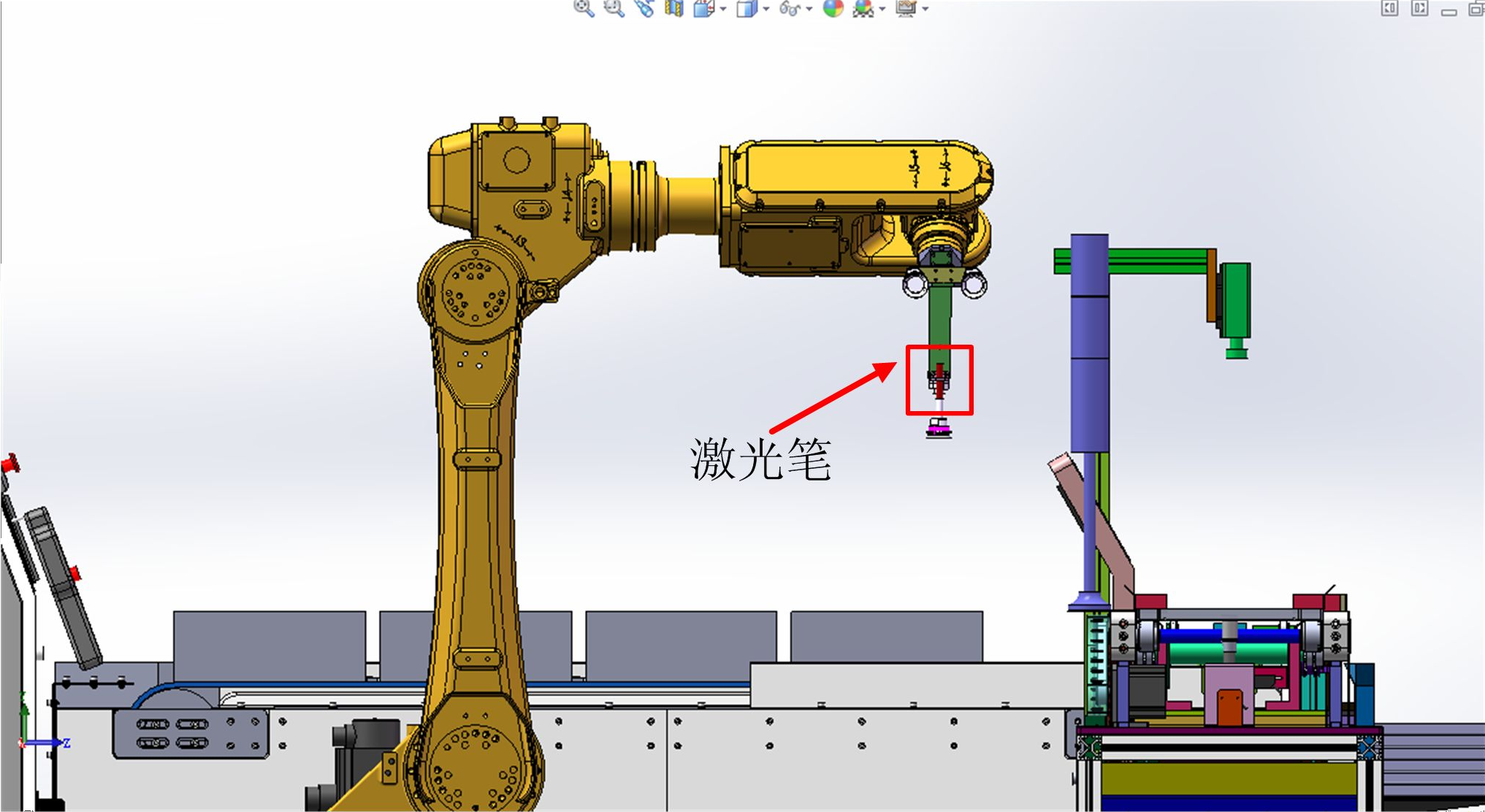 如圖 2-4 所示,在工業(yè)機(jī)器人末端夾具上安裝了一個(gè)激光筆,具體調(diào)節(jié)步驟如下: