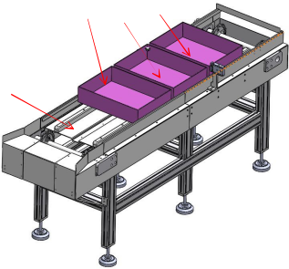 (4) 物品盒流水線,負(fù)責(zé)成品物品盒的裝箱及傳送;