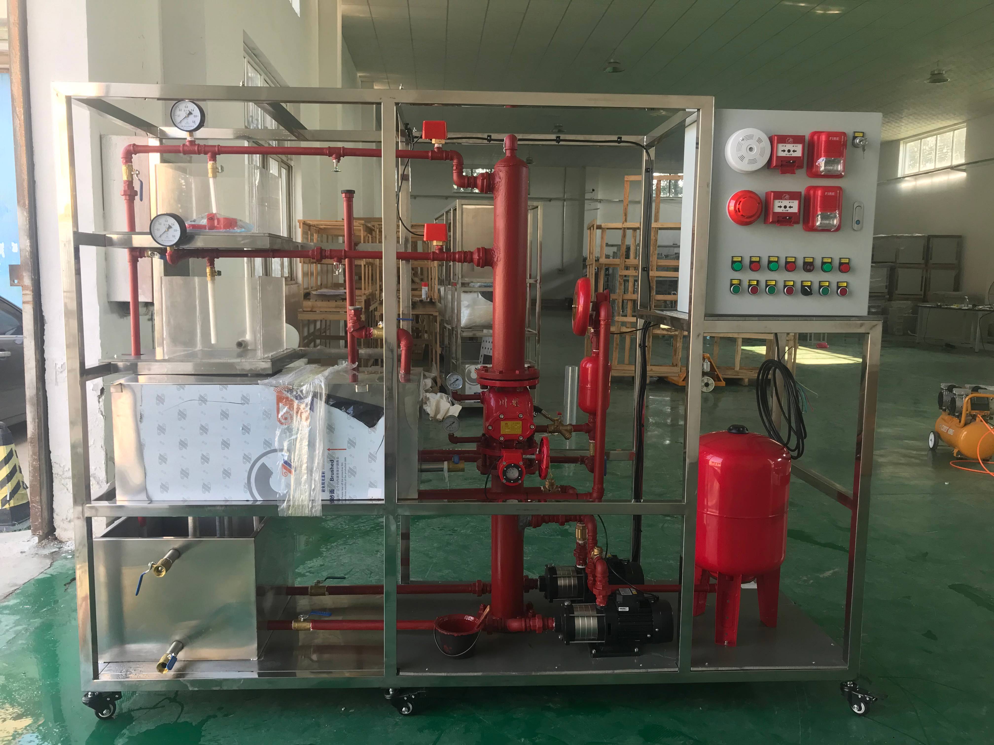 能進行各種自動噴水滅火系統(tǒng)聯(lián)動操作的演示、各種噴頭的安裝及噴水試驗、擴展的滅火試驗、自動噴水滅火系統(tǒng)的工作原理、線路設計與連接、故障設置、判斷與排除等實驗和實訓,并可與消防系列中其它設備聯(lián)網(wǎng)進行各種綜合實訓。