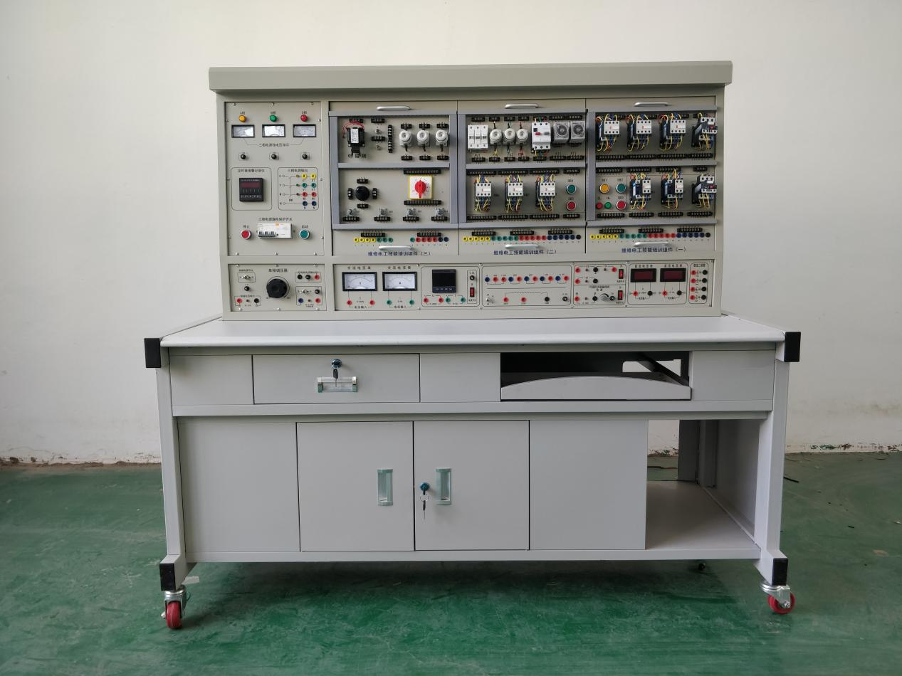 一、特點 1、控制屏采用實訓臺結構,測量儀表及電氣線路元器件固定在相應功能塊面板上 2、實訓項目分類明確,具體到電機檢修過程中的每個步驟,使學生能夠真正掌...