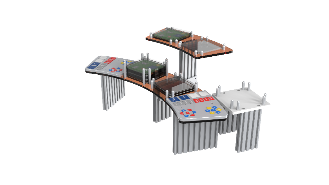 智能制造設(shè)備技術(shù)應(yīng)用平臺(tái)采用教育化的設(shè)計(jì)理念和工業(yè)化的設(shè)計(jì)方法,通過嚴(yán)密的計(jì)算以及合理的布局,將多種功能集成在應(yīng)用平臺(tái)桌面上。