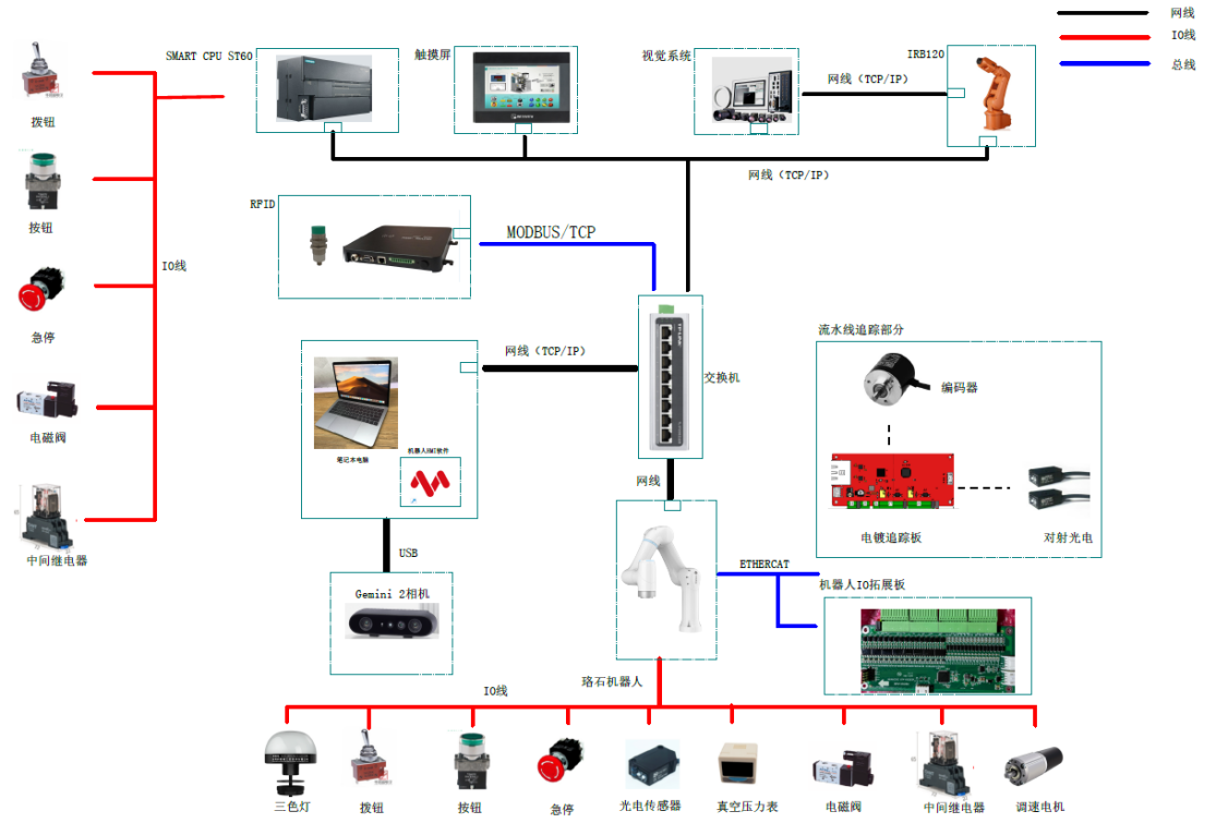 智能制造設(shè)備技術(shù)應(yīng)用平臺(tái)取于工業(yè)應(yīng)用場(chǎng)景,里面主要元件如工業(yè)機(jī)器人、協(xié)作機(jī)器人、鎖螺絲工具、皮帶輸送單元等均來自實(shí)際應(yīng)用場(chǎng)景。