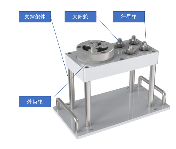 行星齒輪裝配單元是用于機(jī)器人和視覺進(jìn)行柔性裝配的重要一環(huán),由支撐架體、行星輪、太陽輪、外齒輪等組成。此裝配過程通過視覺定位齒輪位置進(jìn)行行星齒輪快速柔性裝配,可避免齒輪齒形誤差造成的安裝困難。并且很好的展示了協(xié)作機(jī)器人的力控特性。如圖所示。