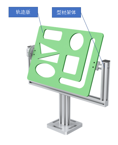 2D軌跡訓(xùn)練單元是將協(xié)作機(jī)器人對(duì)產(chǎn)品裝配前的涂膠工藝進(jìn)行功能抽象化,協(xié)作機(jī)器人抓持涂膠工具沿軌跡板上不同輪廓軌跡運(yùn)動(dòng),模擬涂膠工藝,軌跡板角度可調(diào),保證工藝真實(shí)性同時(shí)增加教學(xué)可行性和趣味性。配備發(fā)動(dòng)機(jī)模擬蓋板組件,實(shí)現(xiàn)定點(diǎn)位置處的軌跡訓(xùn)練如圖所示