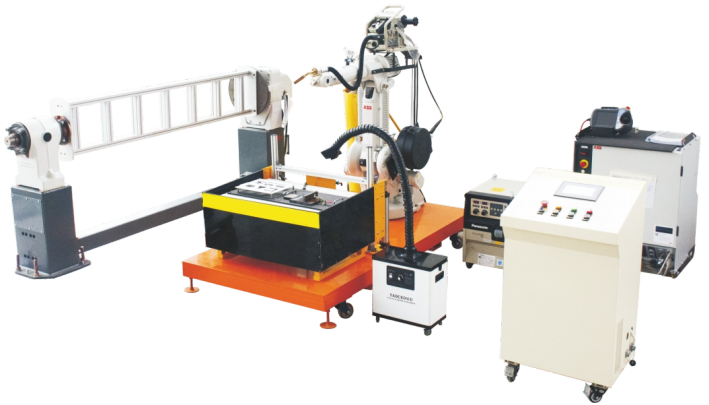 LGY-HJ017A型工業(yè)機器人焊接系統(tǒng)控制與應用實訓裝備主要由ABB1410機器人、IRC5機器人控制器、IRBP L600變位機、松下焊機、送絲裝置、焊槍、WeldGuide IV、焊接工作臺、煙霧凈化過濾器、氣瓶(100%工業(yè)液體二氧化碳)、PLC電氣控制柜、電腦工作臺等組成。設備主要運作功能是通過六自由度工業(yè)機器人與焊接系統(tǒng)、焊縫跟蹤系統(tǒng)、變位機系統(tǒng)以及二氧化碳工作氣體的完美結合,從而實現(xiàn)不同厚度的碳鋼的焊接焊縫跟蹤工作,同時支持直線圓弧焊接以及不同形狀的擺弧焊接和多層多道焊接功能。