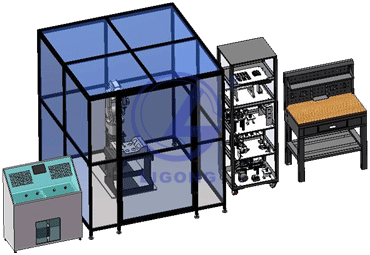 該裝備采用落地式的安裝形式,保證設備的穩(wěn)定可靠,同時采用多道防護裝置,包含了有機玻璃防護網(wǎng)、安全門(安全鎖)系統(tǒng)、安全光幕等硬件保護。