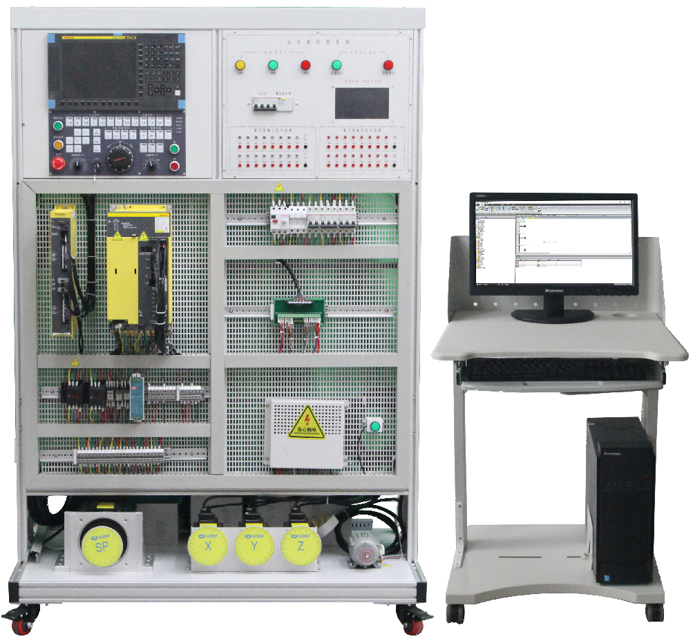 1.電氣控制平臺采用鋁合金型材、網(wǎng)孔板開放式設(shè)計(jì),立式結(jié)構(gòu),符合真實(shí)的數(shù)控電氣安裝環(huán)境,主要由數(shù)控系統(tǒng)、進(jìn)給驅(qū)動、主軸單元、PMC單元、冷卻控制電路、接口單元、保護(hù)電路、電源電路等組成。該單元包含完整的數(shù)控銑床電氣控制部分,以及接口轉(zhuǎn)換單元。