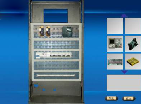 6. 數(shù)控機(jī)床電氣連接中包括了數(shù)控機(jī)床多個元器件的組裝和連線。在元器件組裝中可以將右邊的元器件拖到機(jī)床上進(jìn)行組裝,在組裝完成后,點擊機(jī)床上的元器件將進(jìn)入連線界面進(jìn)行界面,完成數(shù)控機(jī)床電氣連接操作。