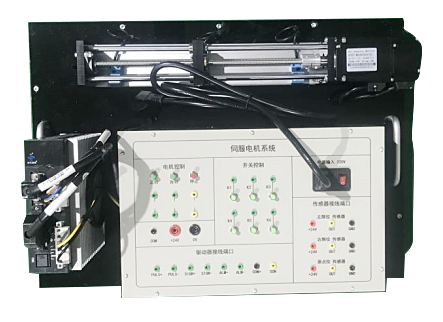 直線運(yùn)動(dòng)機(jī)械模組,行程300毫米,終端具有限位保護(hù)??蛇M(jìn)行位置、轉(zhuǎn)速檢測(cè),轉(zhuǎn)速檢測(cè)精度不少于每轉(zhuǎn)1000分辨率。模型使用了四個(gè)接近開(kāi)關(guān),可以實(shí)現(xiàn)多種控制方式,可以是單一的正反轉(zhuǎn)、多種模式的自動(dòng)往返(加減速分段控制、脈沖模式控制、速度模式控制等)。