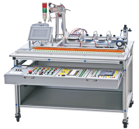 本設(shè)備主要包括實(shí)訓(xùn)臺(tái)架、典型的機(jī)電一體化設(shè)備的機(jī)械部件、PLC模塊、變頻器模塊、按鈕模塊、電源模塊、模擬生產(chǎn)設(shè)備實(shí)訓(xùn)模塊、接線端子排和各種傳感器等組成。整體結(jié)構(gòu)采用開放式和拆裝式,實(shí)訓(xùn)裝置用于機(jī)械部件組裝,可根據(jù)現(xiàn)有的機(jī)械部件組裝生產(chǎn)設(shè)備,也可添加機(jī)械部件組裝其他生產(chǎn)設(shè)備,使整個(gè)裝置能夠靈活的按教學(xué)或競賽要求組裝具有生產(chǎn)功能的機(jī)電一體化設(shè)備。