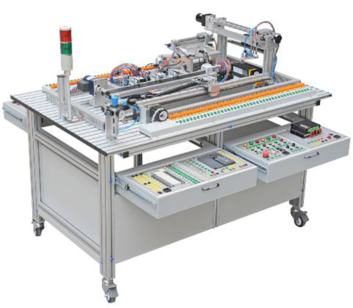 本設(shè)備主要包括實(shí)訓(xùn)臺(tái)架、典型的機(jī)電一體化設(shè)備的機(jī)械部件、PLC模塊、變頻器模塊、按鈕模塊、電源模塊、模擬生產(chǎn)設(shè)備實(shí)訓(xùn)模塊、接線端子排和各種傳感器等組成。整體結(jié)構(gòu)采用開(kāi)放式和拆裝式,實(shí)訓(xùn)裝置用于機(jī)械部件組裝,可根據(jù)現(xiàn)有的機(jī)械部件組裝生產(chǎn)設(shè)備,也可添加機(jī)械部件組裝其他生產(chǎn)設(shè)備,使整個(gè)裝置能夠靈活的按教學(xué)或競(jìng)賽要求組裝具有生產(chǎn)功能的機(jī)電一體化設(shè)備。