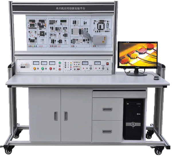 單片機(jī)應(yīng)用創(chuàng)新實(shí)驗(yàn)裝置由控制屏、實(shí)驗(yàn)掛箱、實(shí)驗(yàn)桌組成,通過(guò)本實(shí)驗(yàn)臺(tái)可完成單片機(jī)的接口擴(kuò)展、數(shù)據(jù)采集、數(shù)據(jù)顯示、鍵盤(pán)控制、定時(shí)器、打印機(jī)接口等實(shí)驗(yàn),配備有仿真器。