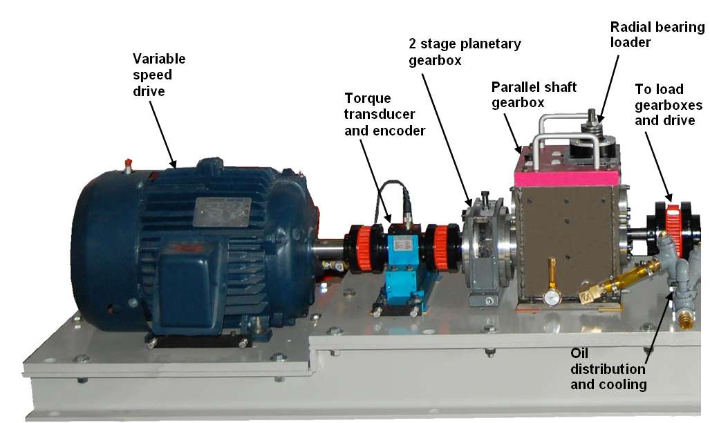 • 兩個(gè)并??列的平行軸齒輪箱與更大的負(fù)載容量比試驗(yàn)變速箱;一個(gè)齒輪箱具有兩個(gè)階段的增速器,一個(gè)變速箱有三個(gè)階段增速