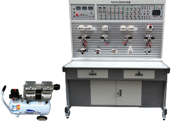 1、氣動與PLC實訓裝置主要由實訓桌及實訓臺、氣動元件和電氣控制器件、可編程控制器(PLC)等組件組成。