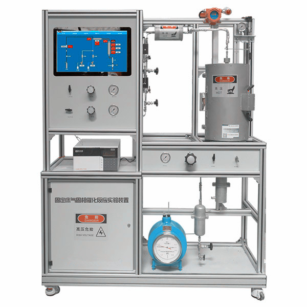 固定床反應器、預熱器、加熱爐、混合器、冷凝器、氣液分離器、質(zhì)量流量計、濕式氣體流量計、蠕動泵、壓力表、溫度傳感器、中央處理器、觸摸屏、高品質(zhì)鋁合金型材框架。