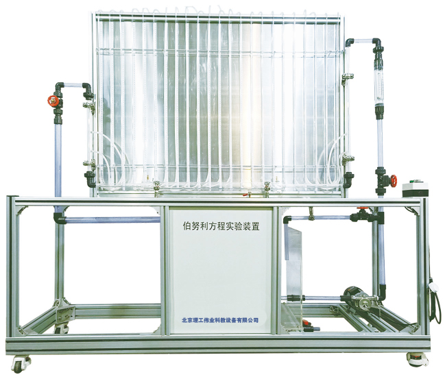 2、演示板:表面噴塑鋁板,配水平坐標(biāo)線。優(yōu)質(zhì)有機(jī)玻璃測壓管,可測定分析各測壓點的壓力變化情況。304不銹鋼低位槽,容積:80L。