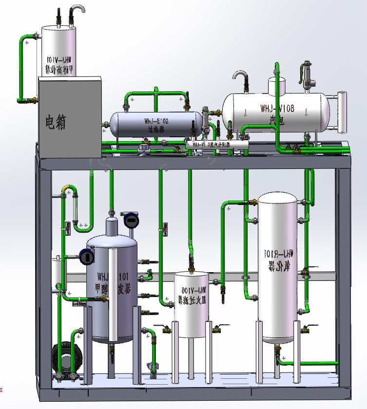 一、裝置特色 整套裝置由鋼制安裝框架、甲醇計量槽、甲醇汽化器、氣體混合器、氧化器、仿真儀表、就地計算機(jī)操作臺、、就地智能儀表控制上位監(jiān)控軟件、外置配套...
