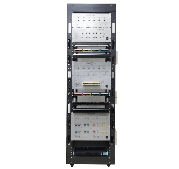 3、結(jié)構(gòu):設(shè)備為19英寸38U開放式機架結(jié)構(gòu),全鋼結(jié)構(gòu),采用1.5mm冷軋鋼板,噴塑處理,防火防靜電、落地安裝、立式操作;立柱板孔采用標(biāo)準(zhǔn)化處理,能夠安裝各種符合標(biāo)準(zhǔn)的IT工程網(wǎng)絡(luò)設(shè)備的安裝;配置智能語音播放系統(tǒng)一套,可以自動播放語音解說詞,方便實訓(xùn)教學(xué)。