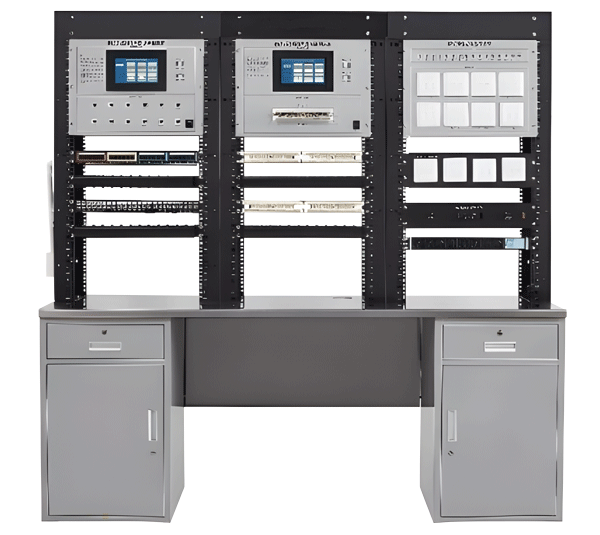 3、結(jié)構(gòu):設(shè)備采用全鋼柜式操作臺(tái)結(jié)構(gòu),主體上下分兩層,上層為三聯(lián)標(biāo)準(zhǔn)19寸面板結(jié)構(gòu),下層為柜體結(jié)構(gòu),可以存放設(shè)備及耗材;立柱板孔及背部板孔均采用標(biāo)準(zhǔn)化處理,能夠安裝各種符合標(biāo)準(zhǔn)的T工程網(wǎng)絡(luò)設(shè)備的安裝;配置智能語音播放系統(tǒng)一套,可以自動(dòng)播放語音解說詞,方便實(shí)訓(xùn)教學(xué)。