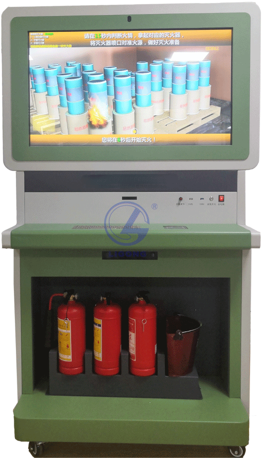 7、設(shè)備結(jié)構(gòu)采用一體式分模塊組合結(jié)構(gòu)設(shè)計,數(shù)字化智能升級。結(jié)構(gòu)分為:顯示分系統(tǒng)(43寸觸摸屏)、設(shè)備主控分系統(tǒng)、滅火分系統(tǒng)。