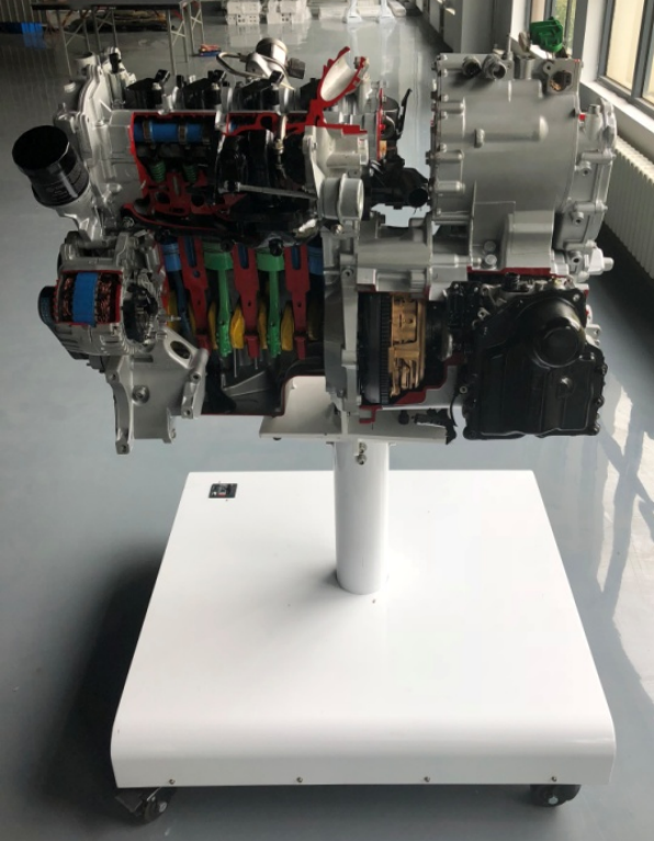 LGE-HDJP01型 新能源汽車混合動力解剖臺以原廠汽車油電混合動力系統(tǒng)總成實物為基礎,選用原裝全新混合動力汽車動力系統(tǒng),發(fā)動機、驅動電機、雙離合變速箱透明解剖;真實地呈現(xiàn)了動力系統(tǒng)核心零部件之間的連接控制關系、安裝位置。適用于各類型院校及培訓機構對汽車油電混合動力系統(tǒng)結構理論和維修實訓的實訓教學需要。