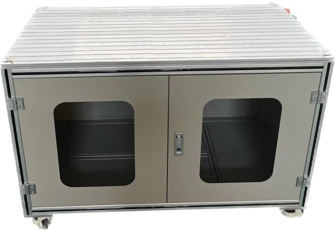 (1)國標40*40mm工業(yè)鋁型材搭建,柜體及門板采用鈑金表面噴塑處理,帶腳輪、腳杯;