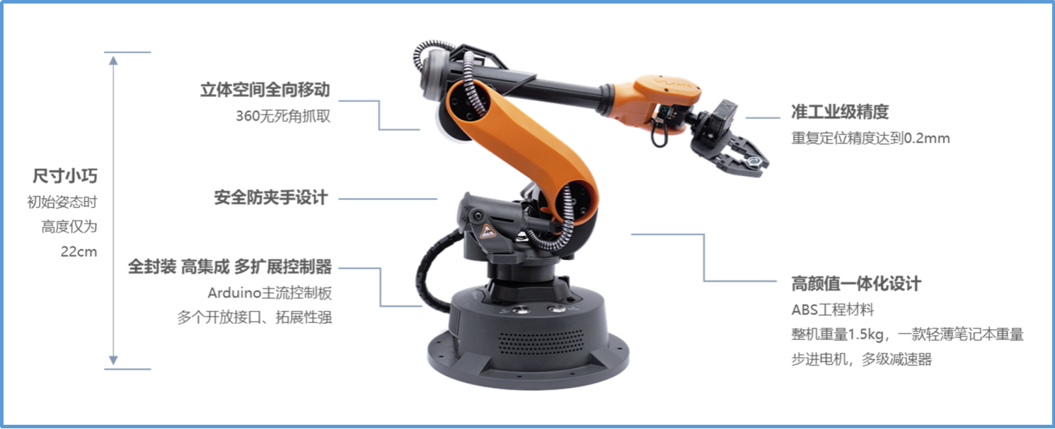 Mirobot是一款以標準工業(yè)機器人外形為參考設(shè)計的桌面級工業(yè)機器人。旨在為機器人實訓教學提供操作安全、場景真實、開源性更高的桌面級機器人。