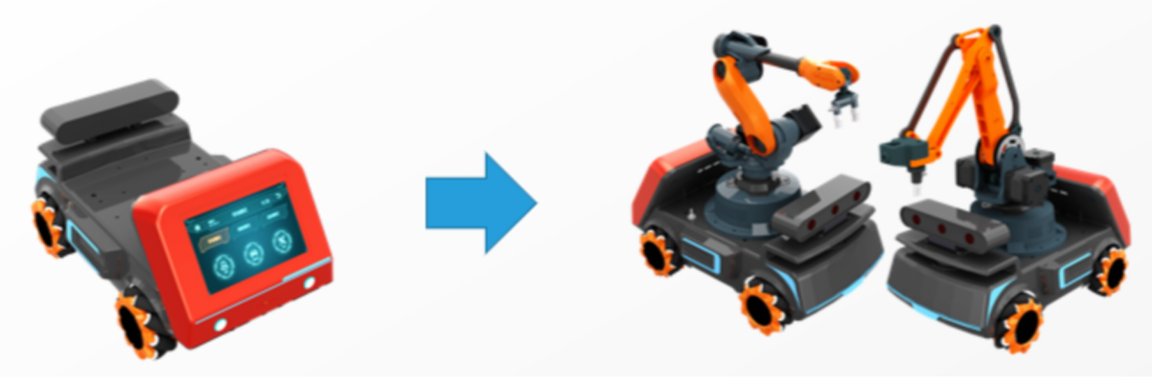 ROS移動機器人*1;導(dǎo)航掃描單元*1;機器人末端視覺模塊*1;桌面六軸機器人*1